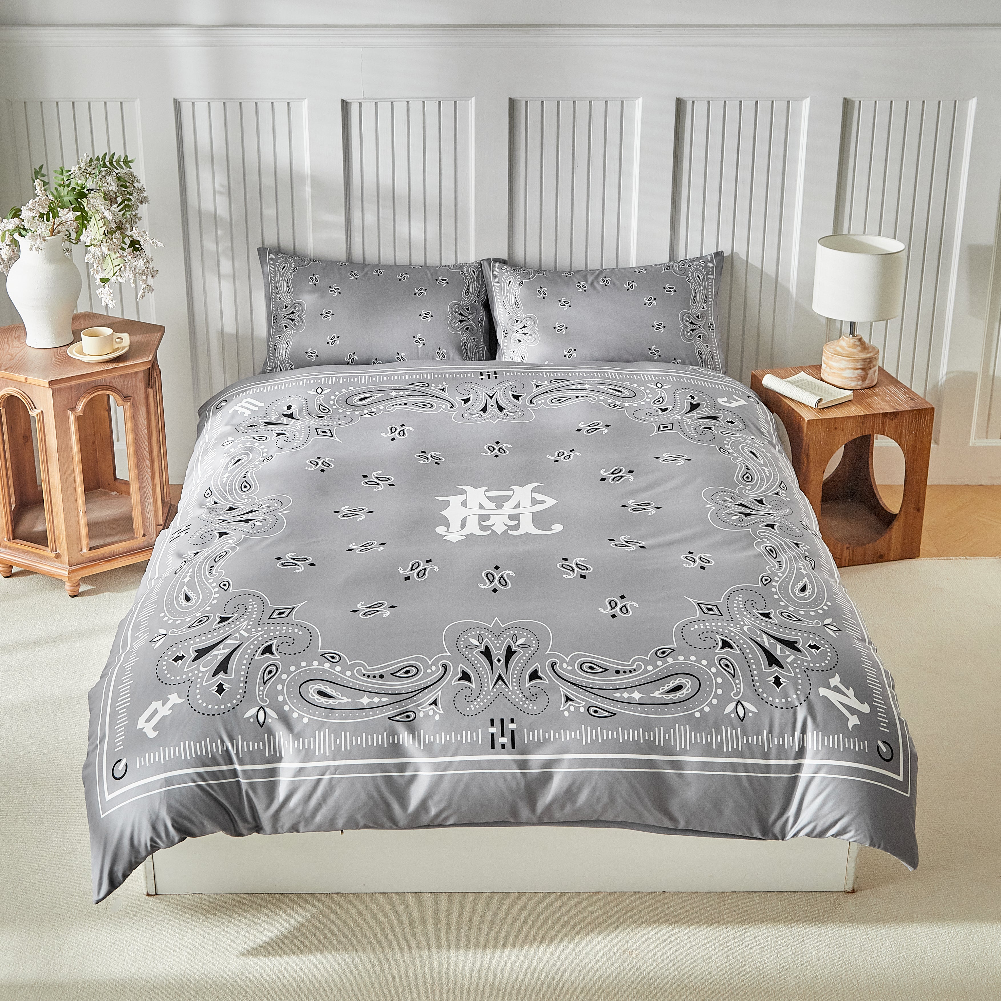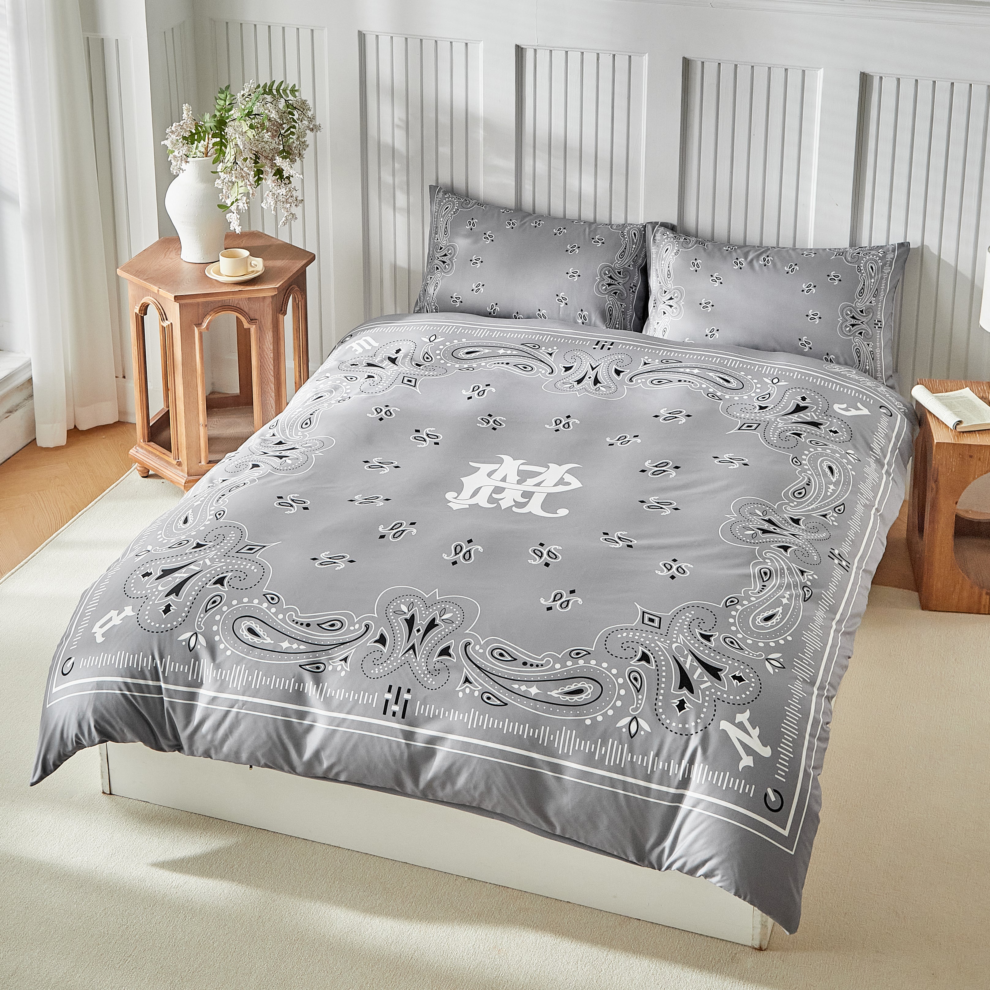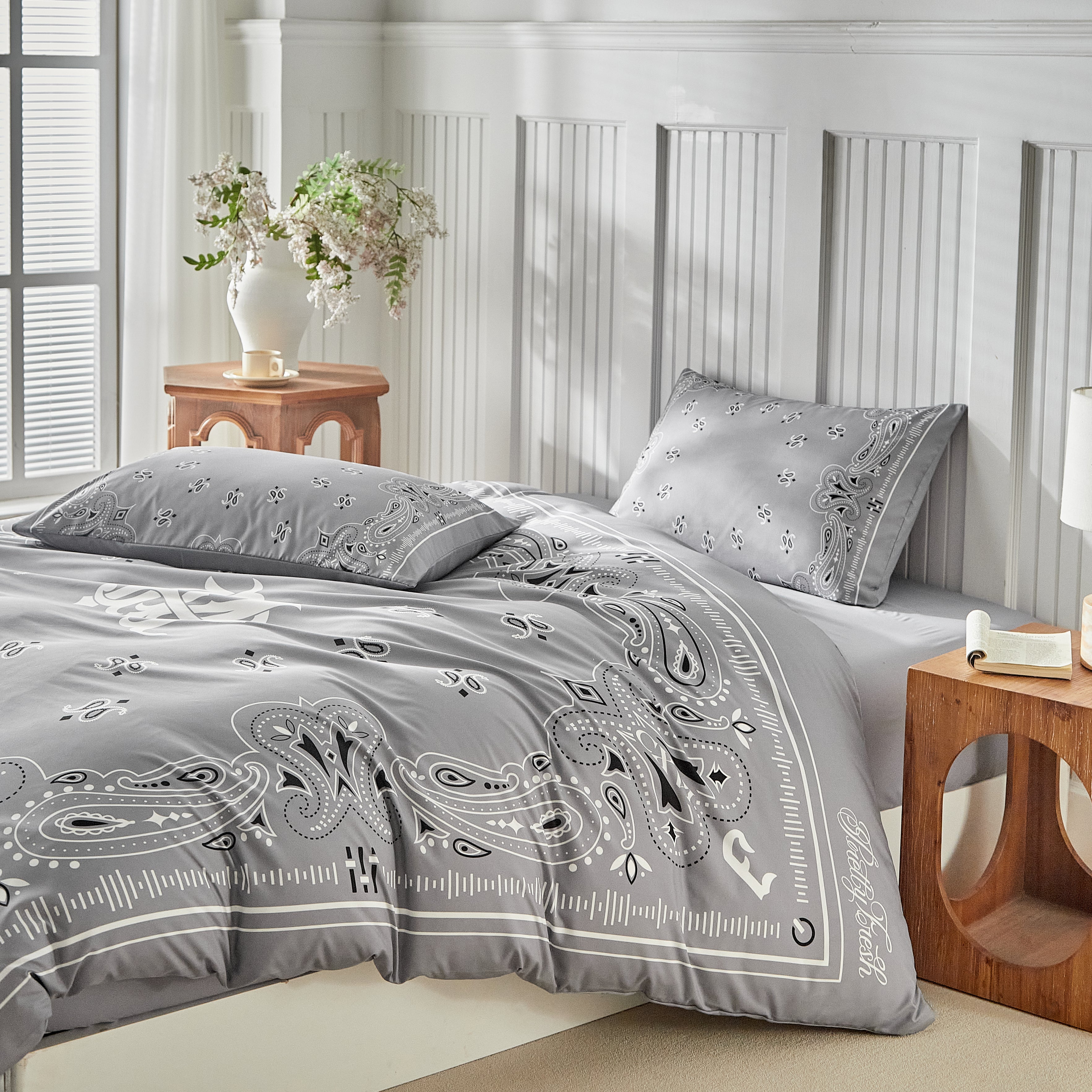Paisley Bandana Bed Set-Grey