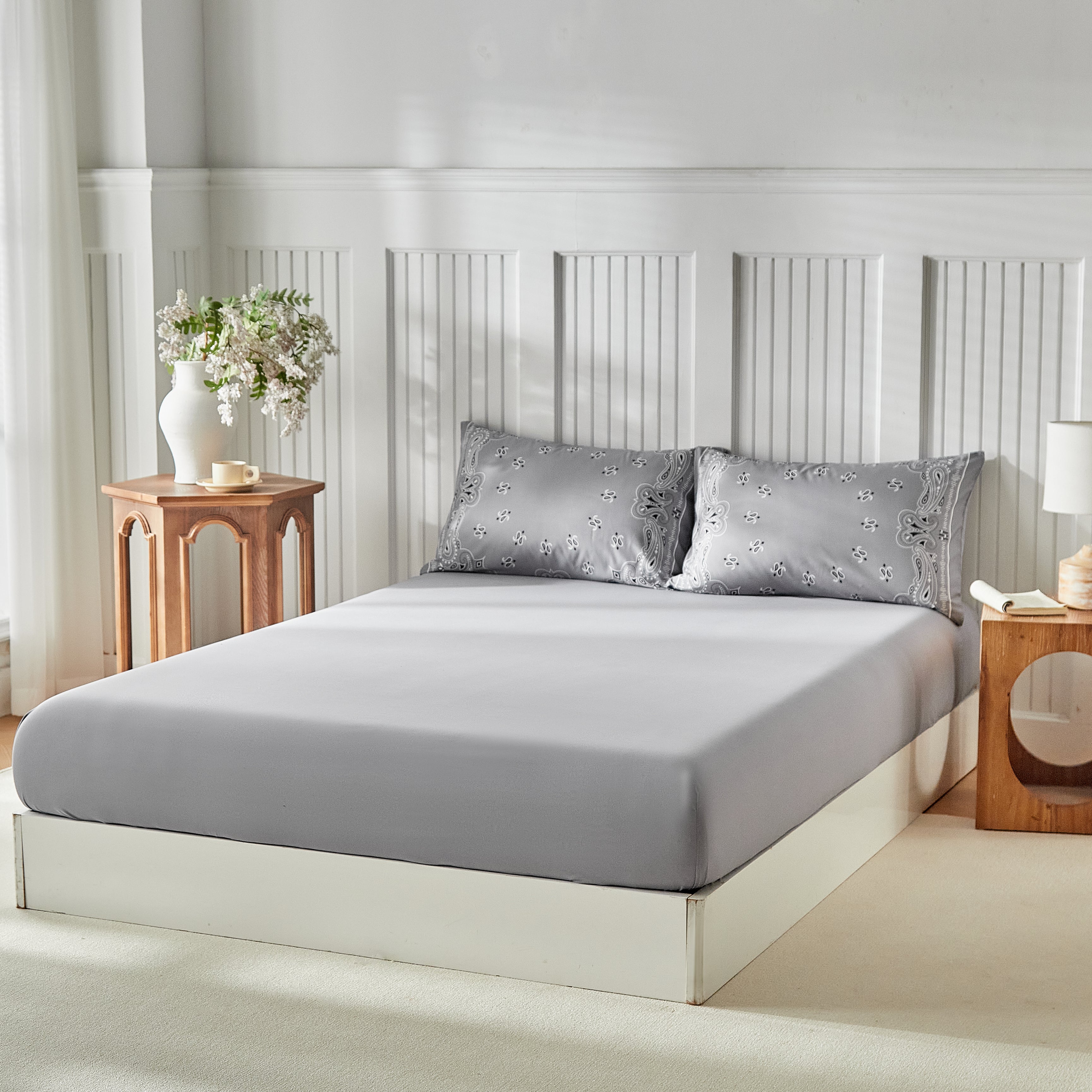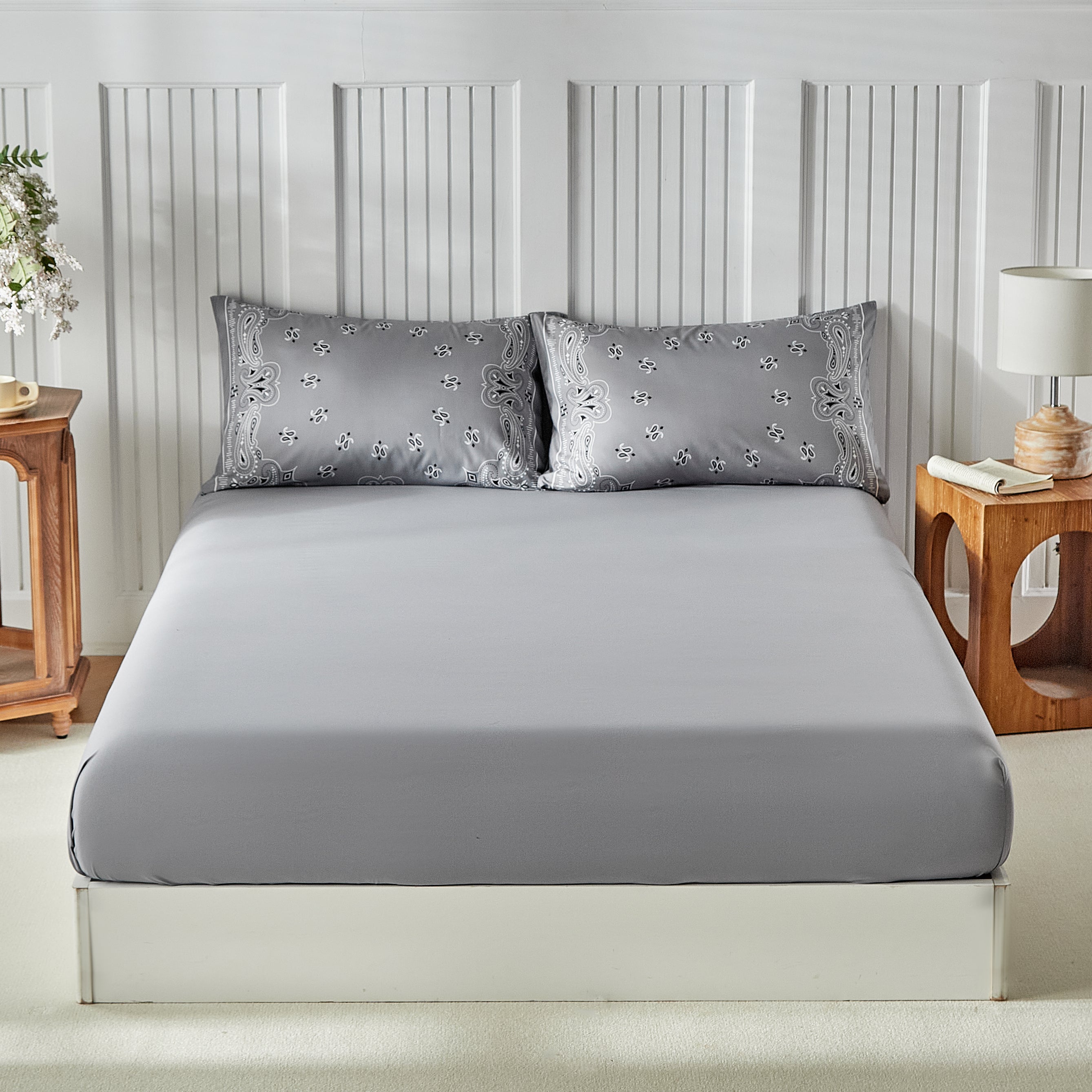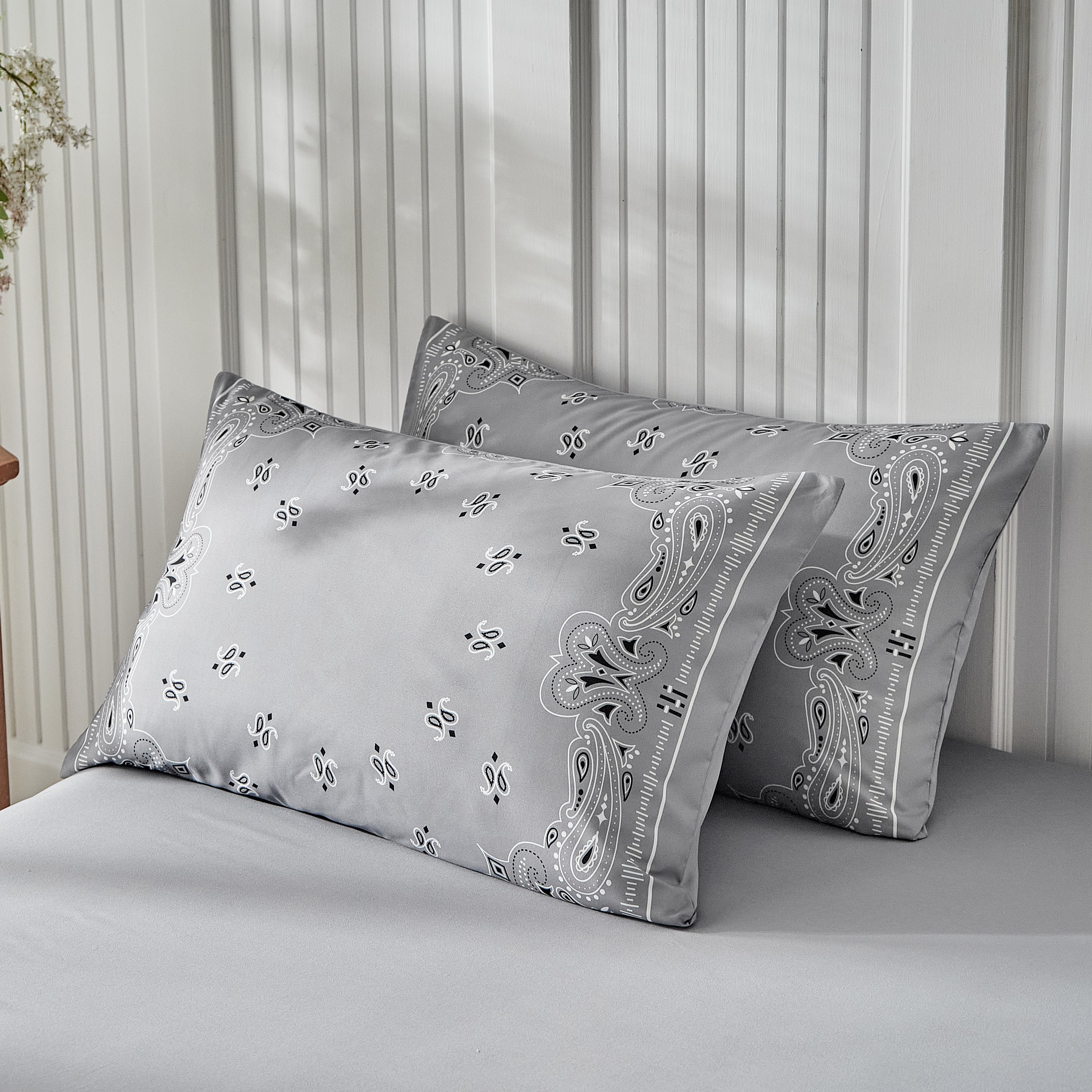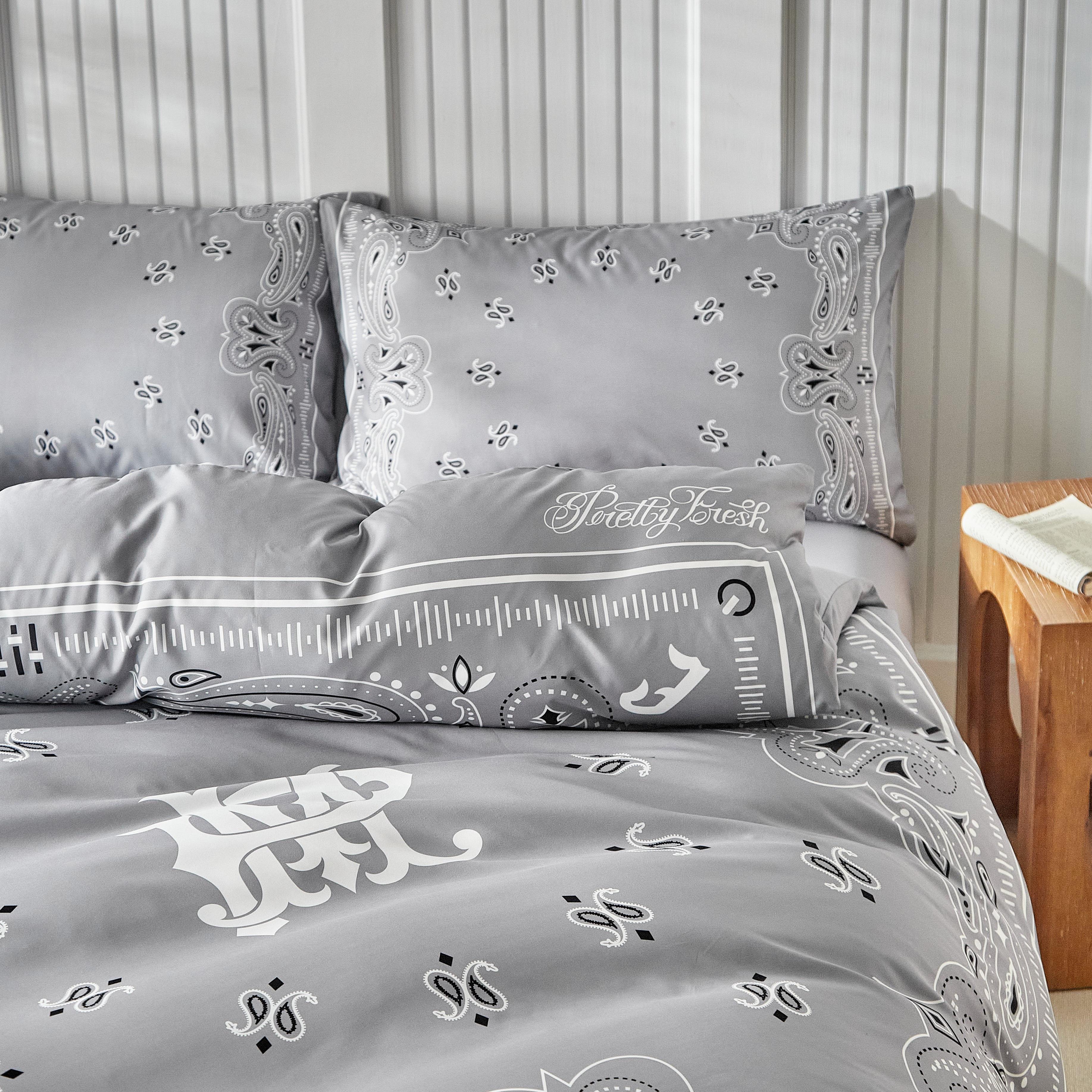 Paisley Bandana Bed Set-Grey