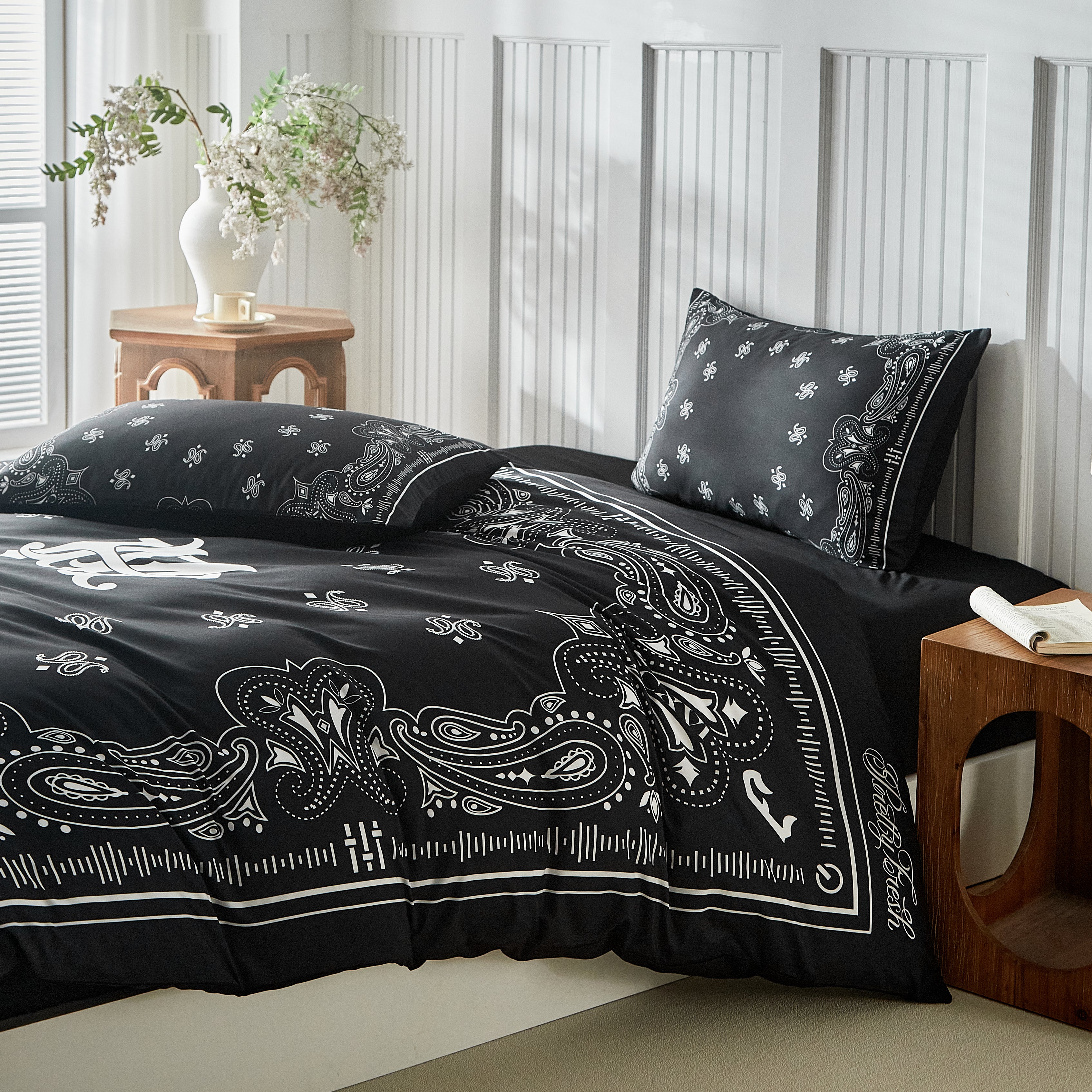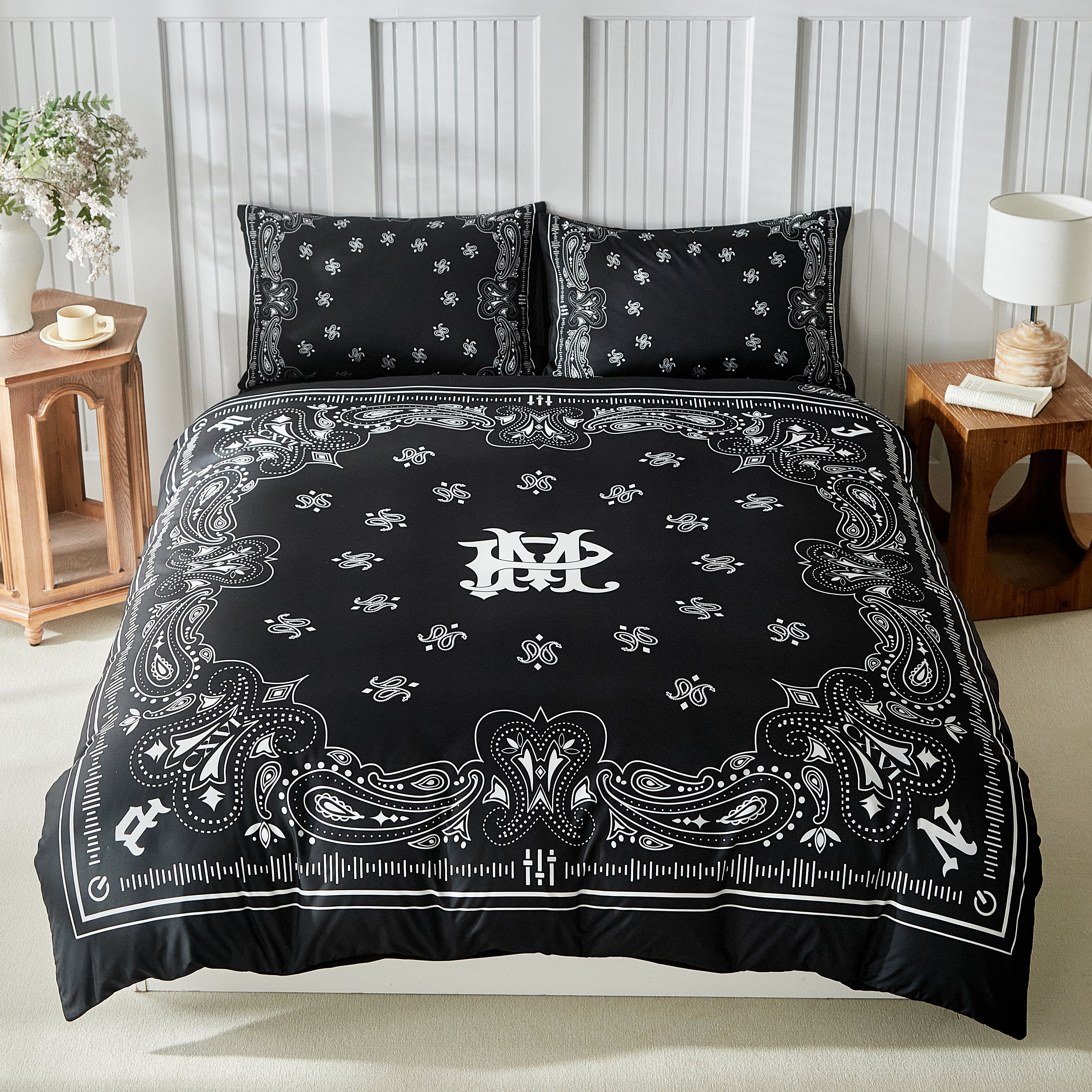 Paisley Bandana Bed Set-Black